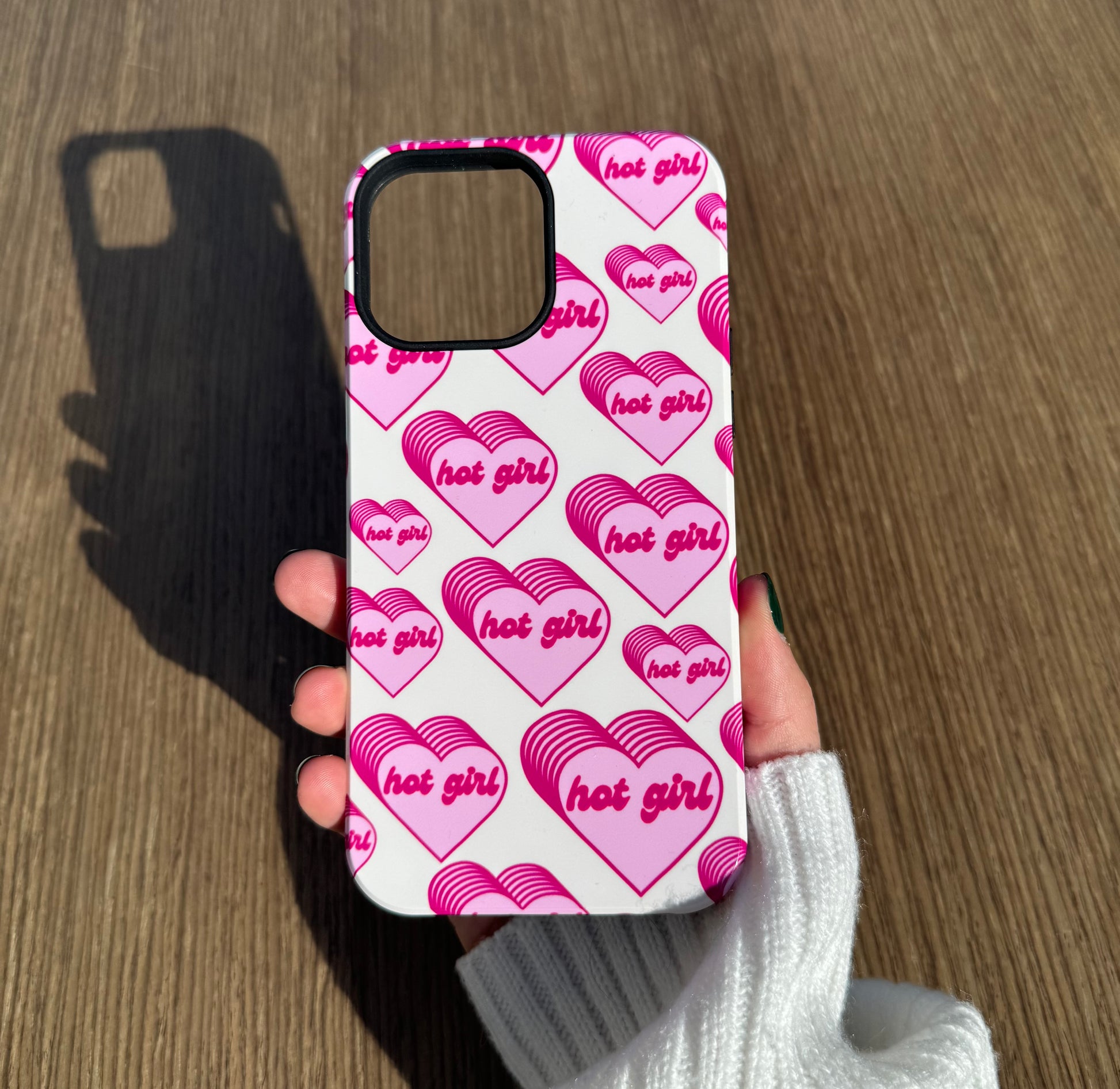 The Hot Girl iPhone Case says it all. She’s chic, adorned with playful pink hearts that radiate fun, confidence, and a dash of flirty charm.
